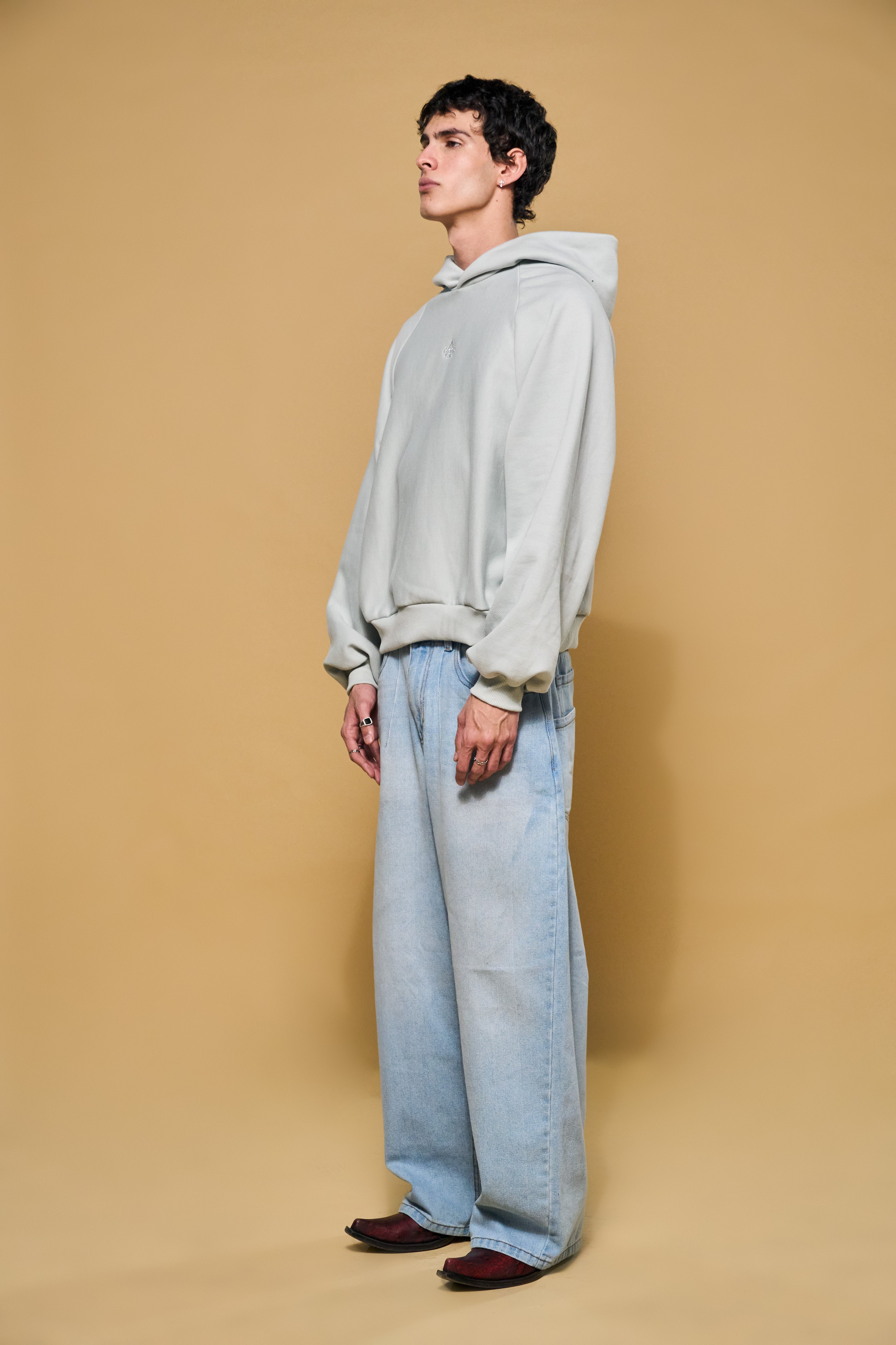 Una pieza definida por su volumen y estructura. Confeccionada en 100% algodón de alto gramaje. Diseñada y modelada 3d, para obtener un Hoodie con caída y concepto.
