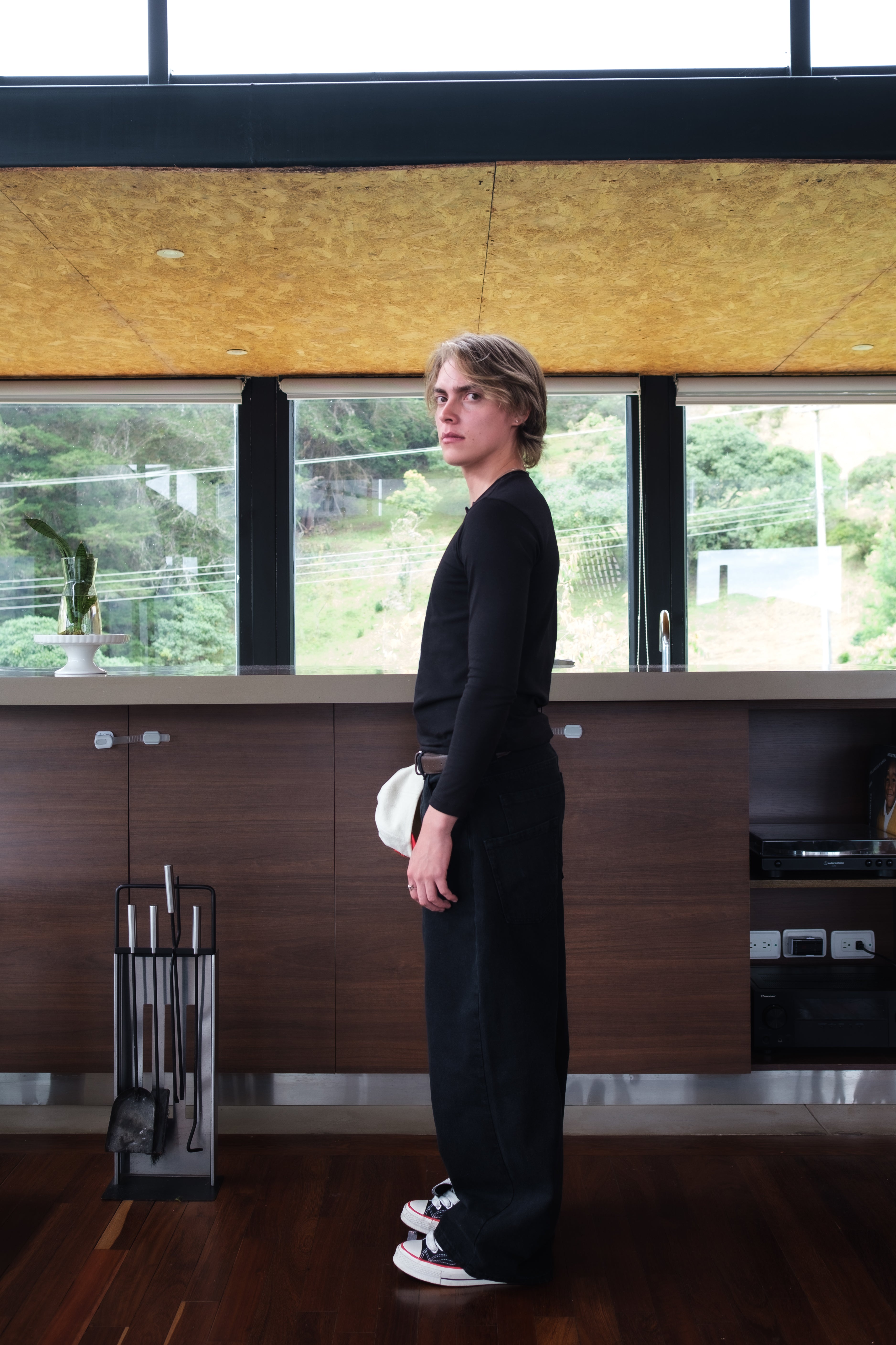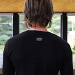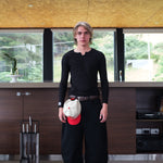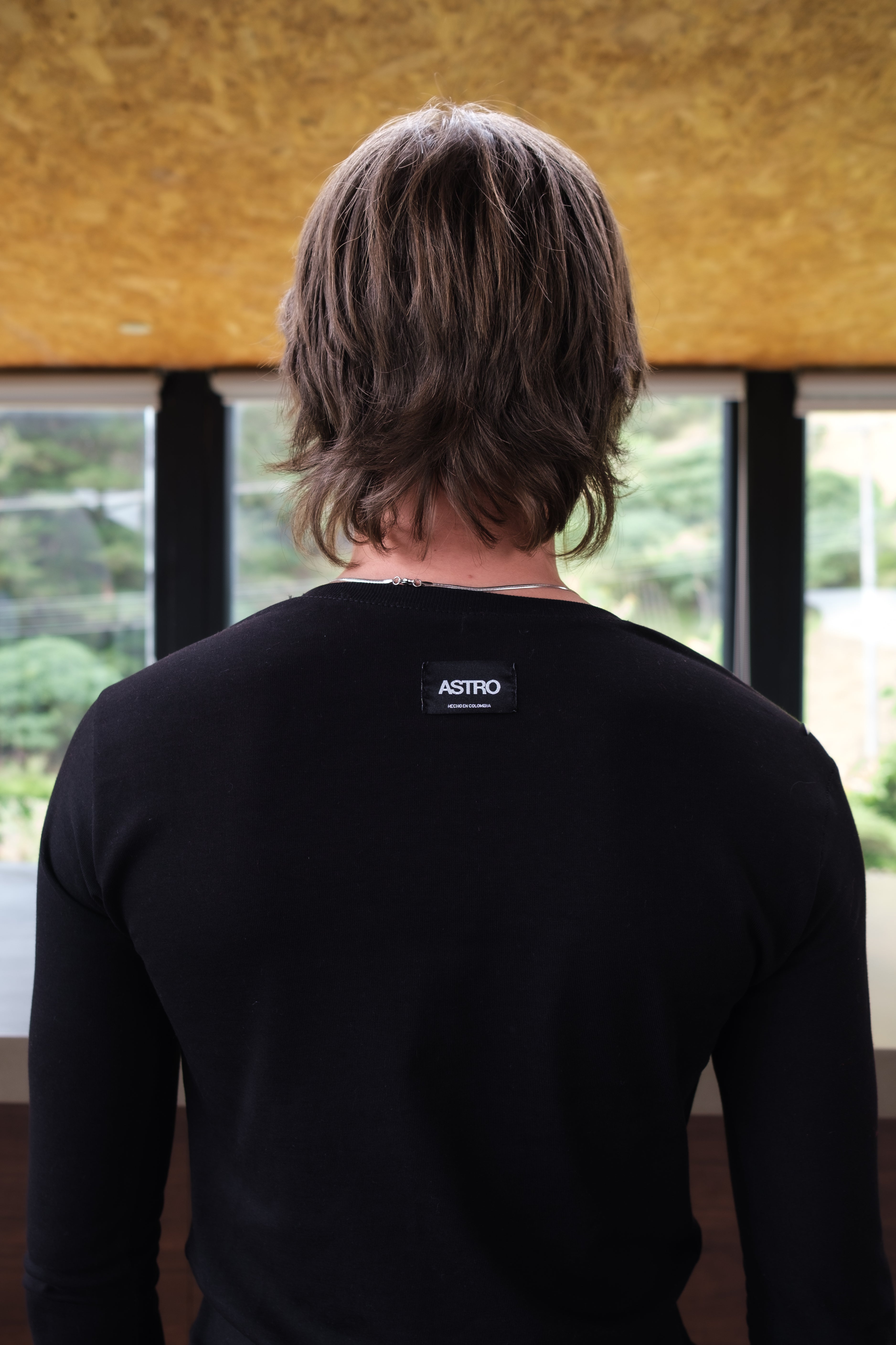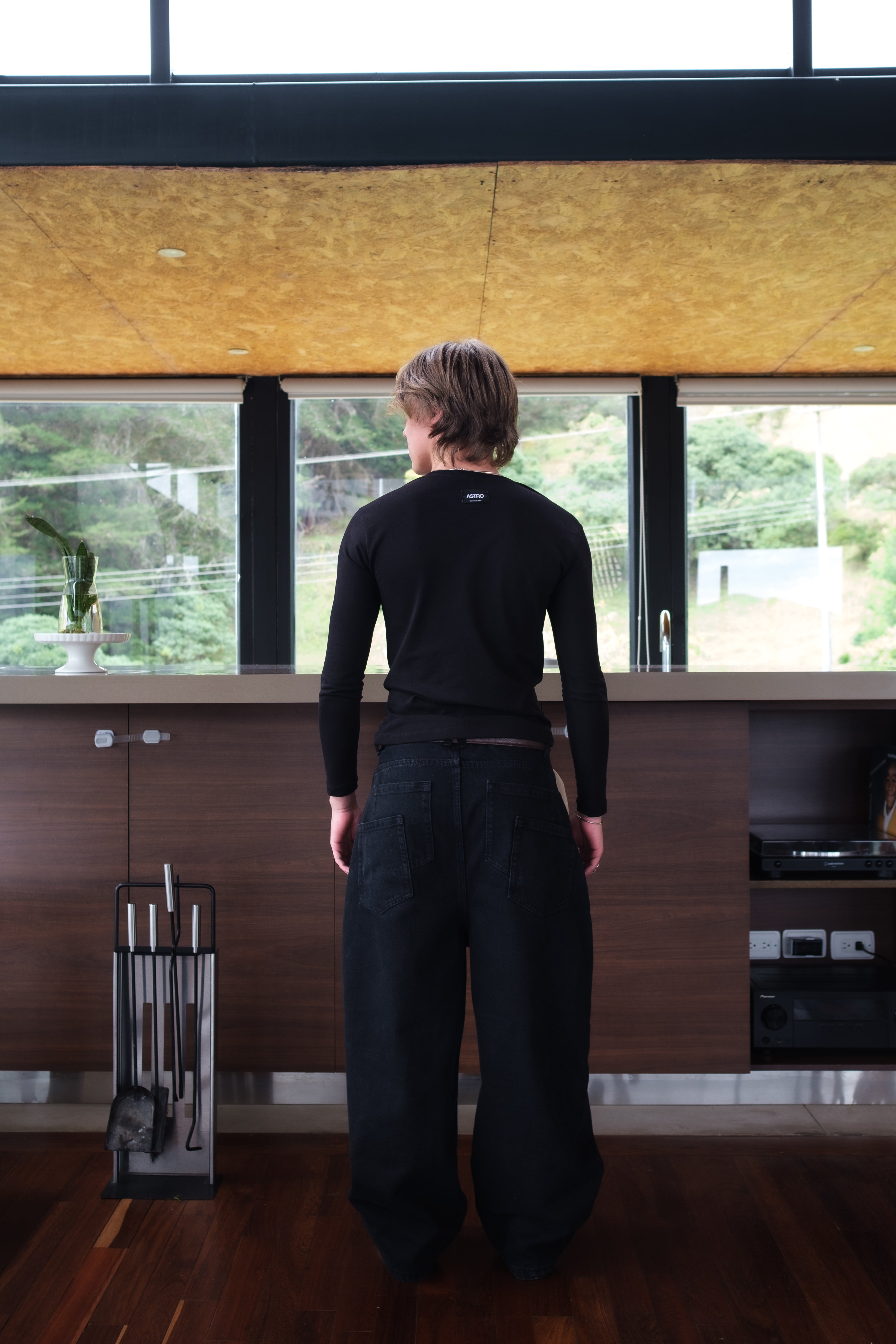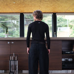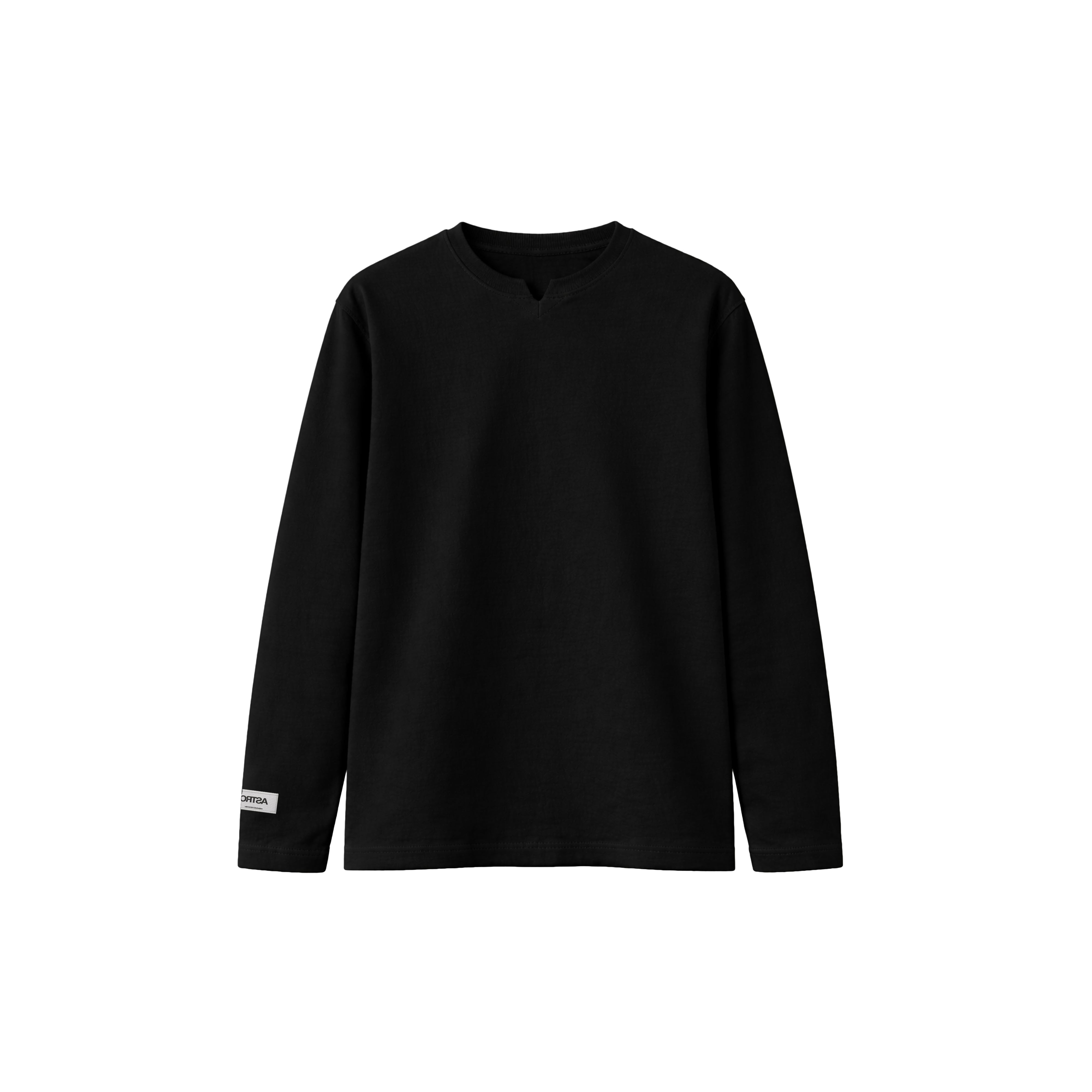 El negro profundo refuerza su carácter esencial, mientras su construcción limpia prioriza la caída, el tacto y la proporción. Una prenda pensada para acompañar, no para competir.