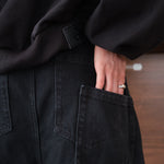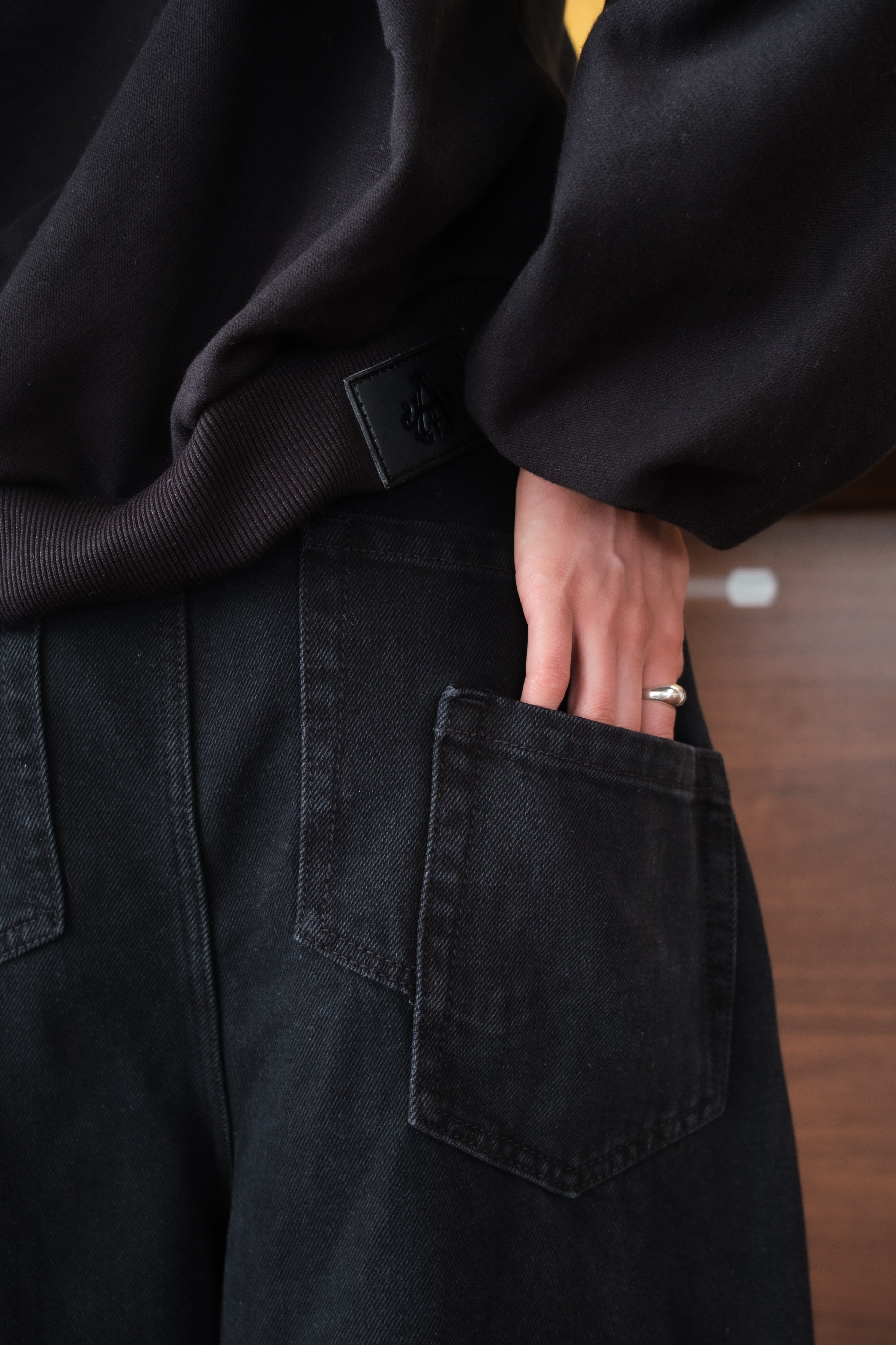 El acabado suave genera profundidad y textura sin romper la limpieza del color. Fabricado en denim 100% algodón de 14 onzas, conserva estructura y resistencia, manteniendo una estética sobria y versátil.