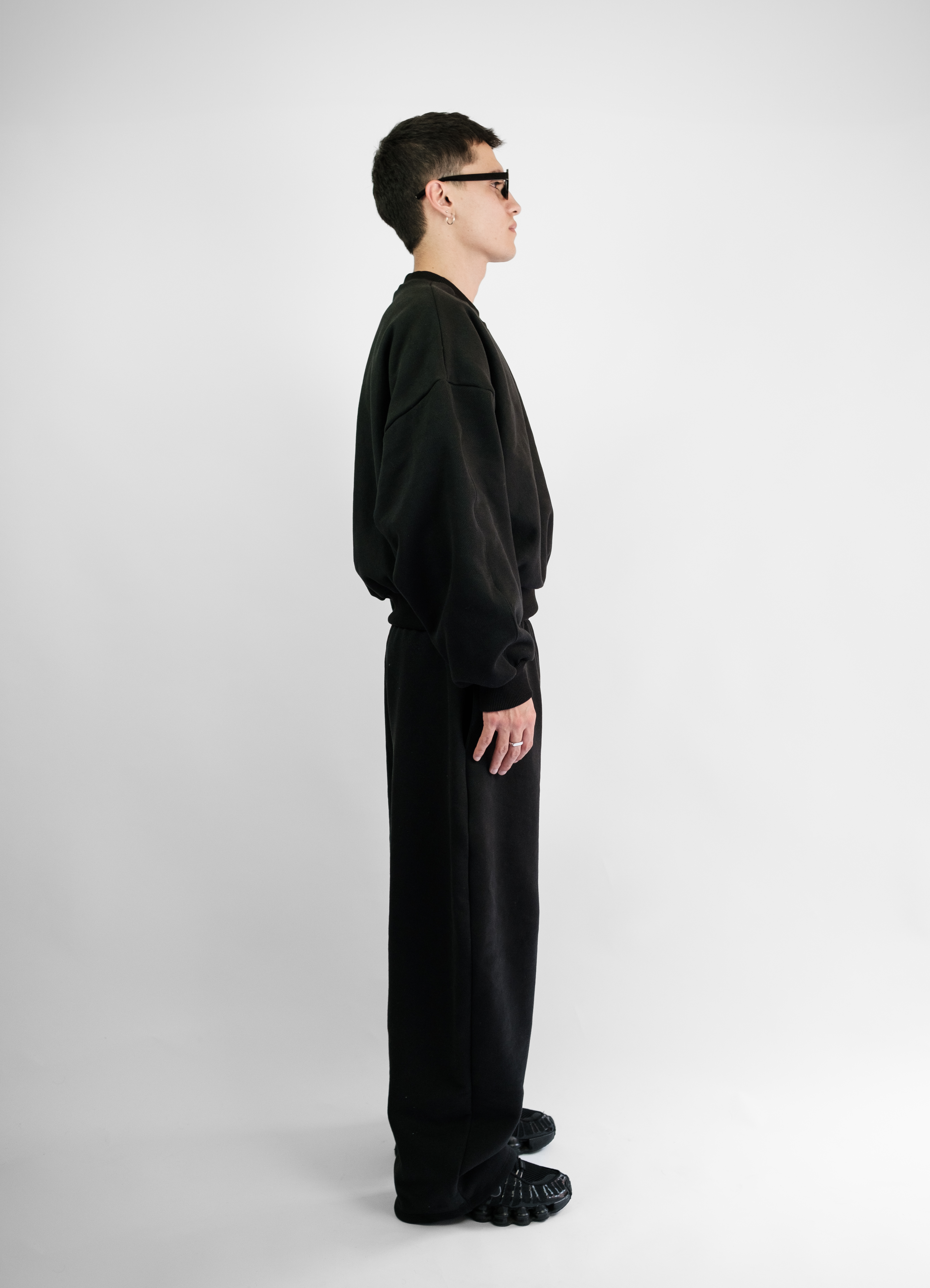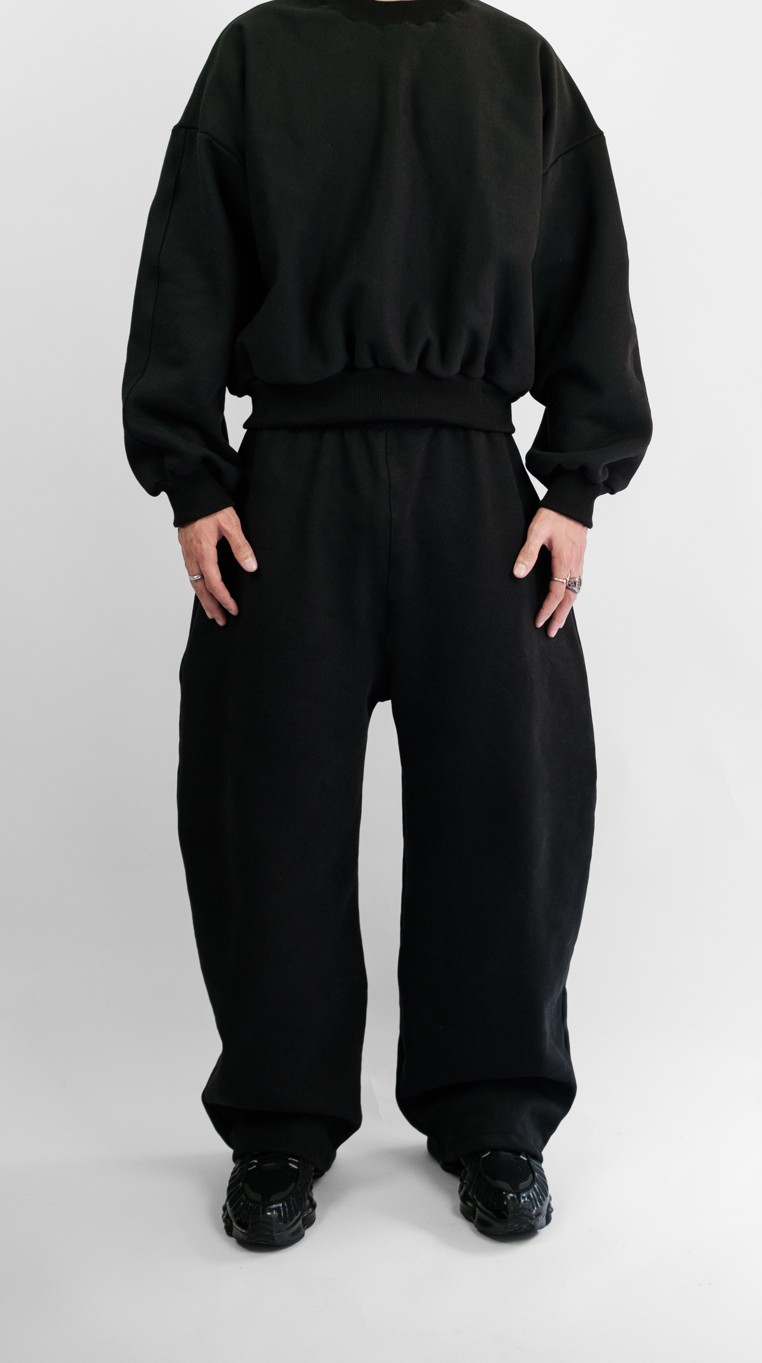 Mejoramos nuestro clásico Sweat Pants. Corte baggy perfecto de algodón 100% de 450 GSM French Terry. Estos pantalones están diseñados específicamente para apilarse sobre su calzado y terminados con una banda elástica en la cintura.